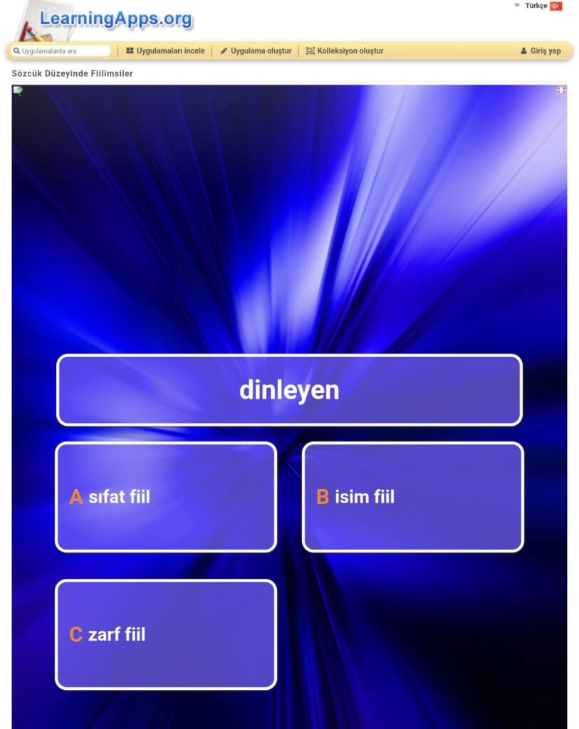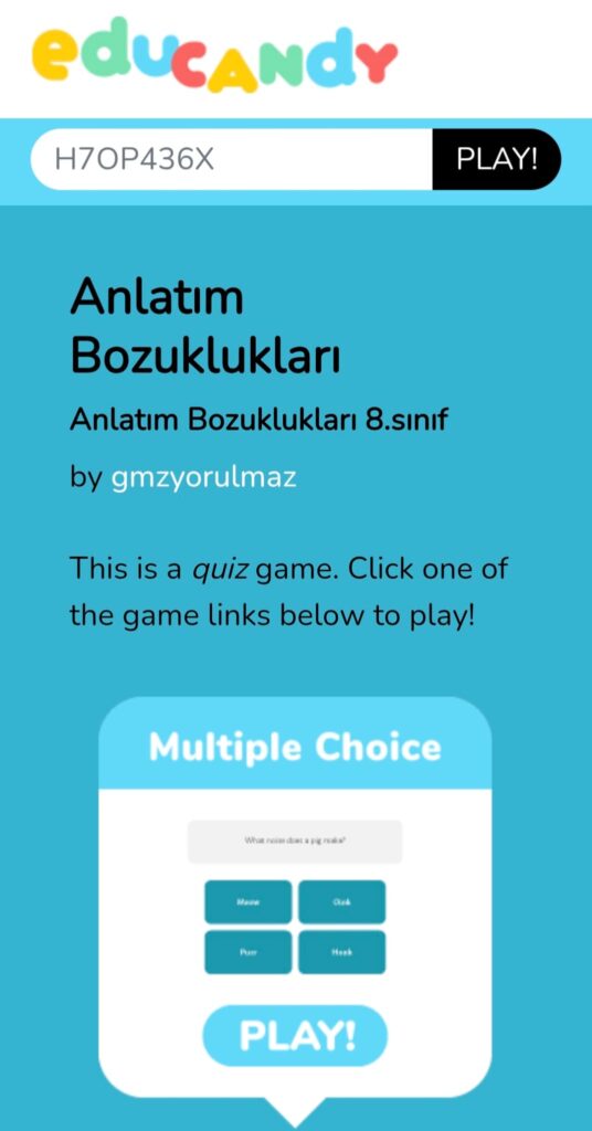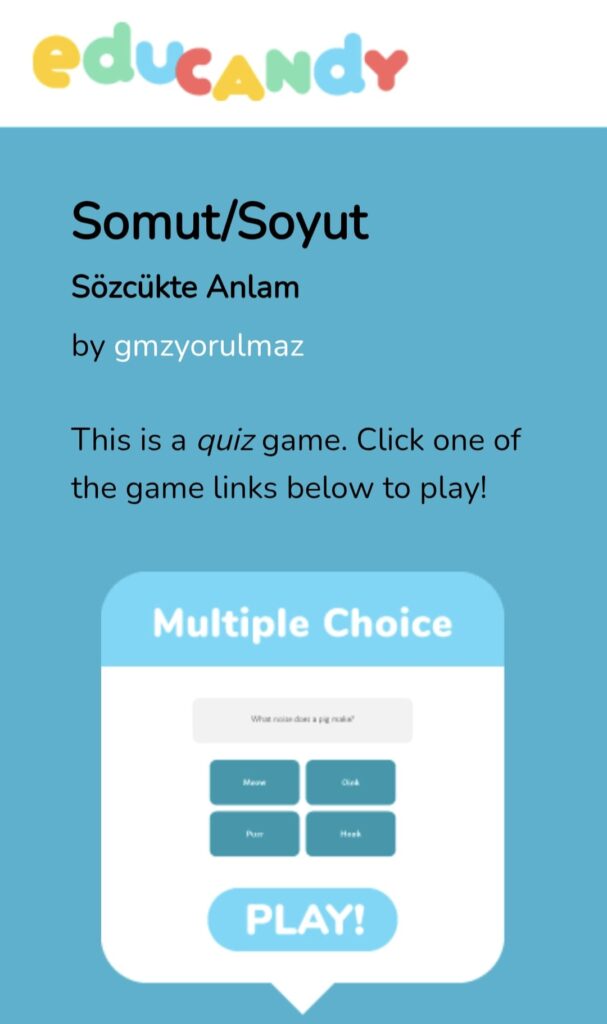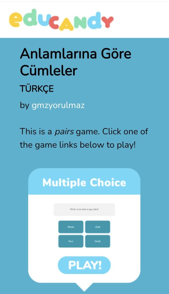 Değerli meslektaşlarım ve kıymetli öğrenciler; bu sayfamızda yer alan Türkçe dijital oyunlar, çağdaş eğitim teknolojilerinden faydalanılarak hazırlanmış özgün içeriklerdir. Sitemizde sunduğumuz Wordwall, Educandy, LearningApps ve Educaplay tabanlı etkileşimli etkinlikler sayesinde dil bilgisi ve anlam bilgisi konuları çok daha kalıcı ve eğlenceli hale gelmektedir.